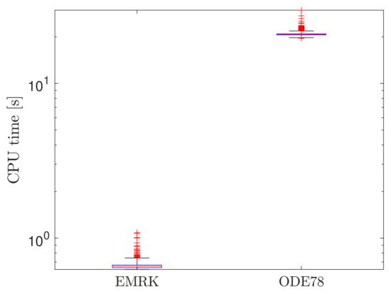 - Dormand, J.R.; Prince, P.J. A family of embedded Runge-Kutta formulae. J. Comput. Appl. Math. 1980, 6, 19–26. [Google Scholar] [CrossRef]