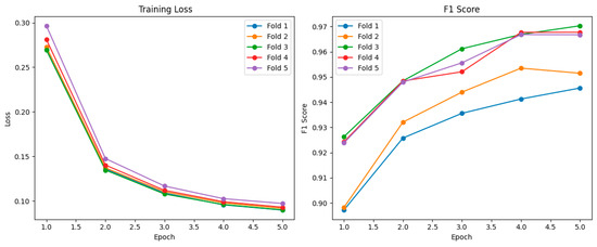 In terms of selecting text processing models, the training times per epoch of RoBERTa and BERT were compared as a reference. The performance in training time between the two is similar (RoBERTa: 11.25 s, 11.09 s, 11.3 s, 11.25 s, and 11.31 s; BERT: 11.25 s, 11.32 s, 11.23 s, 11.28 s, and 11.32 s). The choice to choose RoBERTa over BERT is primarily based on the following reasons. From the experimental results, the RoBERTa model outperforms BERT across all evaluation metrics, particularly demonstrating higher performance in accuracy and F1 score. RoBERTa employs more optimized strategies and larger datasets during its pre-training process, which endows it with better generalization capabilities and robustness when handling natural language tasks. In automatically classifying flight instructor comments, this advantage translates into higher classification performance and more stable model behavior. Considering the comprehensive requirements for accuracy and efficiency in practical applications, selecting RoBERTa as the text processing model is a more suitable choice.