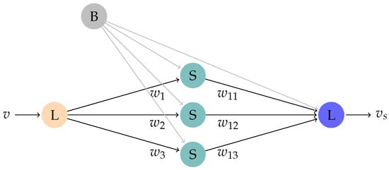Neural Network Approach. A very simple neural network was created, which is shown in Figure 3. The formula which represents the network is shown in Equation (6). For the creation of the neural network, consisting of a single hidden layer with sigmoid activation functions and linear functions in the input and output layers, the package nnet [35] was used.