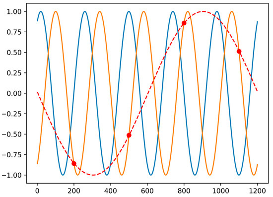 The use of phase measurement introduces challenges related to the periodic nature of the signal. Consequently, the photodiode that detects the reflected laser signal is unable to discern depths exceeding the modulation wavelength. The photodiode signal represents a sub-sampling of the modulation frequency. The theory of sub-Nyquist sampling (SNS) facilitates signal reconstruction from a dataset that falls below the Nyquist–Shannon criterion. Provided that the sampling rate and frequency maintain a specific ratio (in this case, 4:5) and the phase remains fixed, the sine wave can be accurately measured. Once the sine wave is reconstructed, it is compared to the original modulation signal from the laser. The system’s Q/I filter uses this comparison to determine the phase shift between the two signals, which corresponds to twice the actual depth. Solving the following equation is necessary to align the measurement system’s parameters with the behavior of the MEMS mirror.
