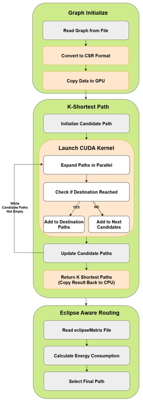 Block diagram of GPU-accelerated Eclipse-Aware Routing algorithm.