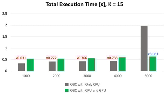 Compare total execution time of OBC with Only CPU vs. OBC with CPU and GPU.