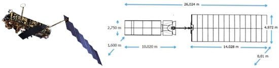 ENVISAT satellite with its geometrical dimensions.