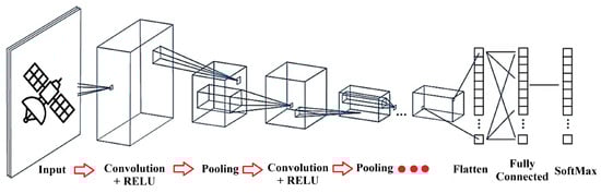 The CNN architecture consists of multiple layers, each serving a distinct function. These functions include a convolutional layer, pooling layer, activation function, fully connected layer, and loss functions. Over the past decade, numerous CNN architectures have been introduced. These architectures have significantly enhanced performance across various applications through structural changes, regularization, and parameter optimization. Major improvements have stemmed from reorganizing processing units and developing new blocks, particularly by increasing network depth. This section examines key CNN architectures from AlexNet in 2012 to the High-Resolution model, analyzing features like input size, depth, and robustness to guide researchers in selecting the appropriate architecture for their tasks []. Figure 4 visually demonstrates the CNN architecture as following [].