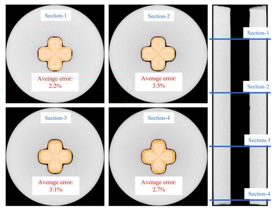 | Position (mm) | Area in Simulation (mm2) | Area in Test (mm2) | Error (%) |