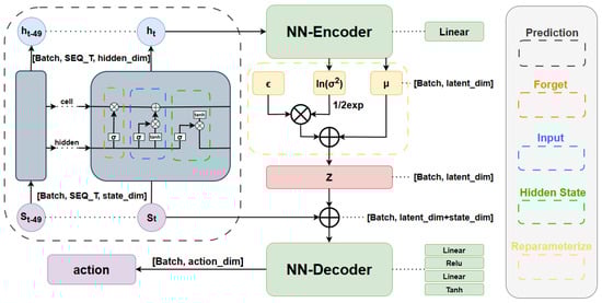 The generator in TSCQ is trained using a VAE-based objective to ensure that the produced actions remain within the offline distribution. Unlike conventional VAE-based policies that take raw observations as input, TSCQ extracts a hidden representation h from the sequential data before passing it through the encoder. Specifically, given an input observation s, we first apply the long short-term memory network [44] (Equation (12)) to obtain the final hidden state h. This hidden state h then serves as the true input to the encoder.