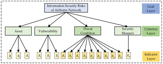 As an active defense technology, information security risk assessment must consider multidimensional evaluation criteria and factors. Numerous scholars have investigated information security risk assessment indicators across various domains. Li et al. [11] established a detailed index system utilizing the analytic hierarchy process (AHP) and Intuitionistic Fuzzy Sets, including five dimensions: risk analysis, risk prevention, risk control, risk treatment, and monitoring and improvement. Shirvani et al. [12] proposed a risk assessment framework using custom standards and the STRIDE threat model to enhance the identification of threats and risks within the electric vehicle ecosystem. Tsai et al. [13] constructed an index system comprising risk, demand, attack, and configuration layers, integrating safety requirements, potential attack methods, and system configurations, while using AHP to calculate weights for assessing and managing wireless networks. Sato et al. [14] examined the probability dependency relationships among information assets, threats, and vulnerabilities by focusing on malicious communication within the network. Dong et al. [15] established an information security risk assessment system for smart grids, employing a D number preference relation enhanced AHP to determine indicator weights and combining grey theory to derive a comprehensive evaluation value and risk level. Li et al. [16] divided the computer network security risk assessment system into three main sections: assets, access control, and communication and operation, further refining each into multiple detailed evaluation indicators. Although these studies have advanced the construction of evaluation index systems, most are limited to simple optimizations for specific industries or fields, with constraints on applicability in complex interaction environments. Particularly regarding the critical criterion of threat conditions, existing research frequently employs generic threat conditions or linear logic-based safety analysis methods, failing to fully consider interaction risks among components in complex information systems, which may lead to overlooked potential risks. In the highly complex interaction environment of airborne networks, traditional general information security risk assessment systems are clearly inadequate. Therefore, it is necessary to expand threat conditions within a general assessment framework to enhance the adaptability of the assessment system to airborne networks. This study improves the STPA, capitalizing on its capability to identify complex interaction risks in airborne networks to further refine threat scenarios. By integrating the interaction risks identified by STPA into the assessment system, a more comprehensive coverage of potential safety threats arising from component interactions in airborne networks is achieved, thereby enhancing the scientific rigor and accuracy of assessments and providing a more reliable theoretical foundation for airborne network security risk assessment.