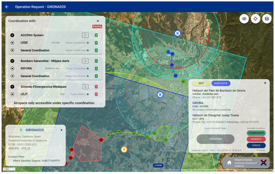 Even though the advantages above seem relevant enough, it is true that only after the initial deployment of the ACCORD platform and some extensive employment by all the actors involved will its actual advantages and improvement areas be identified. Given that such a milestone lies in the future, an initial comparative evaluation has been carried out by managing the coordination process associated with several drone operations. All the operations have been located close to the Barcelona metropolitan area, one of Catalonia’s densest areas in terms of aeronautical infrastructures. A document-based and ACCORD-based coordination process has been carried out for each test operation.