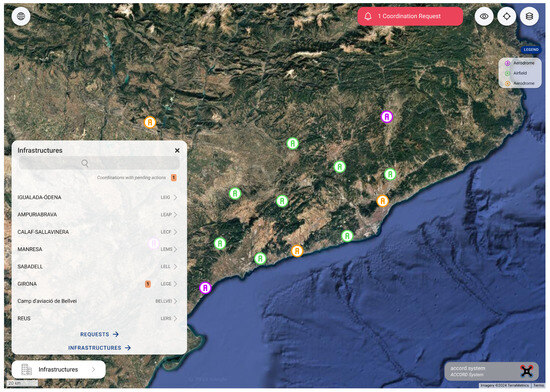 The designed process is currently under test with some of the most relevant actors in the Catalan drone ecosystem, consolidating its implementation. The current version of the process provides support for all types of aeronautical infrastructures (heliports, airfields, and airports) and the management duality associated with infrastructures operating an aeronautical service provider. The process has been implemented within the supporting platform referred to as ACCORD.