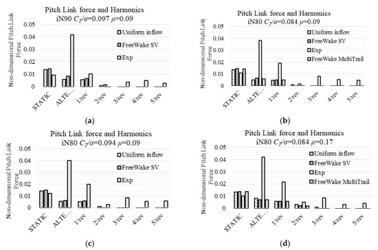 It should be noticed that the model’s inaccuracy in structural properties also contributes to the discrepancy between the solution and reality, especially the nonhomogeneous properties of the blades due to manufacturing. The model assumes perfectly homogeneous blades, and this simplification reduces the model’s ability to match test data. More efforts should be put into the mathematical description of these non-homogeneities and the resultant loads of the rotor in future work.