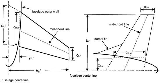 The tail wetted areas may be calculated using an approach like that for the wing wetted area. A schematic diagram of the horizontal and vertical tail surfaces and their dimensions is presented in Figure 4.