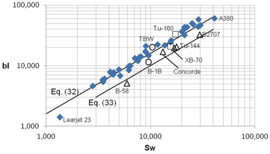 Three of the airplanes in the supersonic group (Concorde, Tu-144, XB-70) have fully ducted engines and their wing wetted areas are found to fall within ±3.8% of a third trend given by