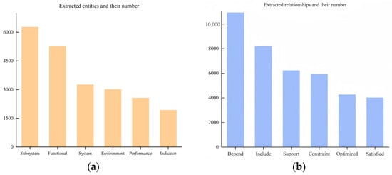 The number of extracted entities and relationships. (a) The extracted entities; (b) the highest number of relationships.