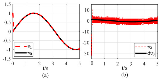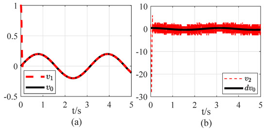 From Figure 4 and Figure 5, the simulation results demonstrate that when the TD parameter of the original signal is properly selected, the signal tracking and differentiation acquisition capabilities of TD are guaranteed for the new input signal . Therefore, based on the proposed parameter tuning rule, the obtained new parameter of TD is effective.