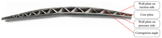 Iterative design corrugations on both sides: According to the experimental results of the diffusion bonding manufacturing process, maintaining the good manufacturing quality of the blade requires that corrugation angle parameter , wall plate thickness and core plate thickness satisfy a corresponding relationship, that is Equation (5).