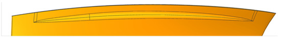 In the cross-section design method of wide-chord hollow fan blades, the inner cavity curve is generally obtained by offsetting the blade outer curve toward the inner cavity in a design cross-section according to the wall plate thickness parameter. The blade’s outer shape, created based on aerodynamic experiment data, is mostly splicing surfaces, and there are a large number of broken surfaces caused by the thinning feature at the blade tip, as shown in Figure 4. This makes the blade cross-section curves complex, resulting in difficulties in offsetting, and the inner cavity curves are also subject to multiple constraints to meet the blade performance and manufacturing process requirements, including distance and smoothness, etc. Therefore, it is necessary to study the complex curve offset method to see if it is suitable for hollow blade geometric design.