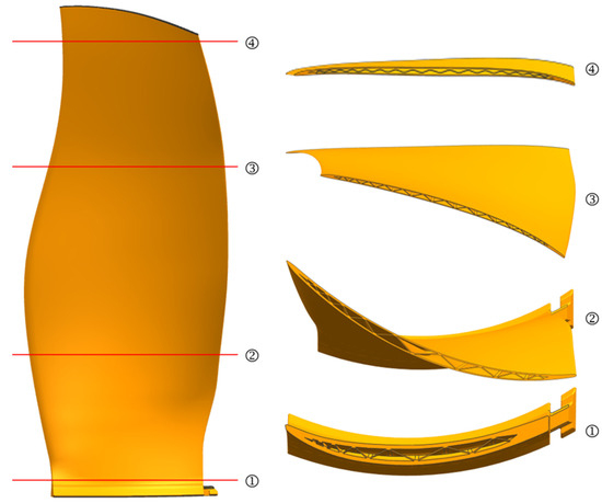 Since the pressure side and suction side of the blade outer shape are both composed of free-form surfaces, it is difficult to directly design the accurate hollow structure by design parameters. Therefore, this paper adopts the cross-sectional design method to carry out the hollow structure design based on the blade outer shape cross-section curves. This method can not only avoid the inconvenience caused by complex free-form surfaces but also ensure the design’s accuracy by controlling the number and position of the cross-sections.
