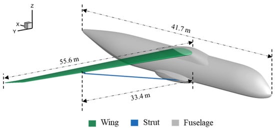 However, this approach must also account for the aero-structural interaction between structural flexibility and aerodynamic loads when assessing aircraft performance, which in turn limits the maximum wingspan [7,8]. To address the limitations imposed by conventional cantilever-wing configurations, the strut-braced wing (SBW) configuration, proposed in the 1950s for transonic aircraft, has resurfaced as a viable research option today due to advancements in materials science [9,10].
