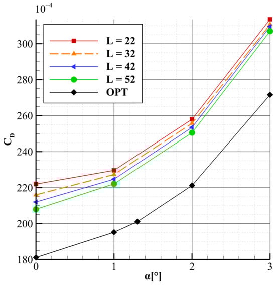 CD vs. α for the optimized configuration compared to the parametric study results.