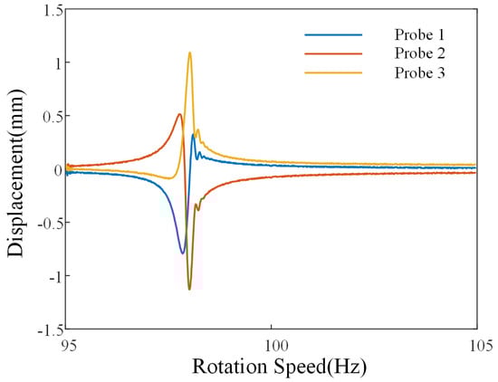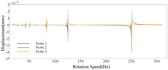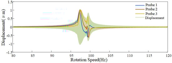 The ToA, measured by the three probes, was processed using T-BTT to obtain the blade vibration displacement. The displacements of blade No. 16 as it passes through the probes are shown in Figure 22, which is significantly different to the SDoF model.