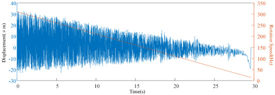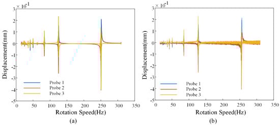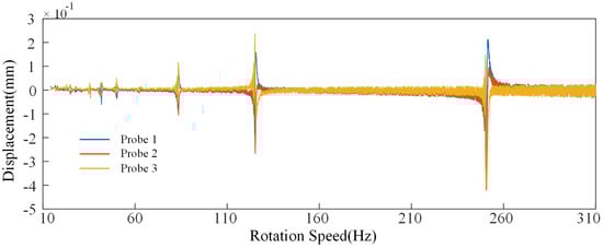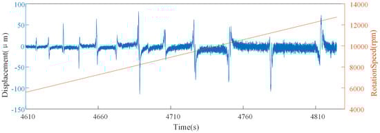 The rotor is accelerated from 5800 rpm to 13,000 rpm, and the tip displacement is calculated by the BTT method, as shown in Figure 26. It shows the same phenomena as Figure 11; that is, as the speed increases, the measurement error also increases.