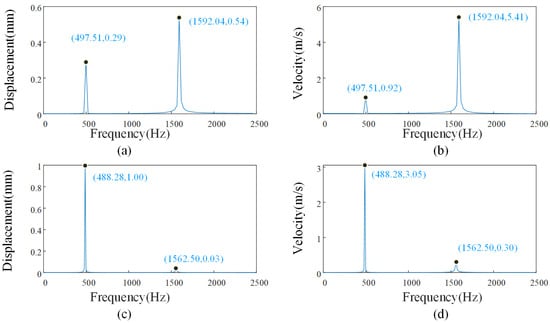 Based on the amplitude data shown in Figure 24, and can be solved, which are basically consistent with the spectrum results and simulation settings. The correctness of the present model and solution is further verified.