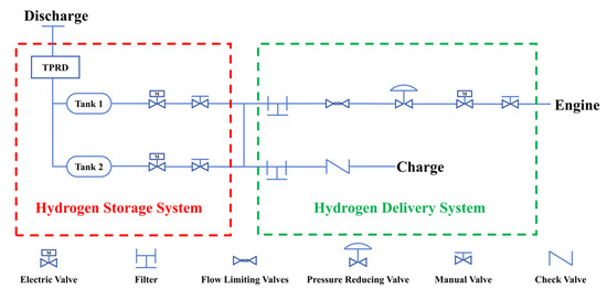 In the hydrogen aircraft, the hydrogen-related systems include the hydrogen storage system and the hydrogen delivery system. A common architecture for these systems in hydrogen aircraft is illustrated in Figure 7.