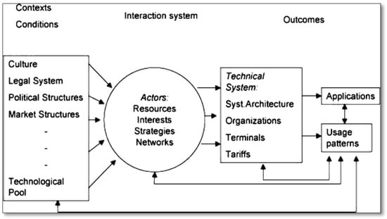 - Mayntz, R.; Schneider, V. The dynamics of system development in a comparative perspective: Interactive videotex in Germany, France, and Britain. In The Development of Large Technical Systems; Mayntz, R., Hughes, T.P., Eds.; Campus Verlag: Frankfurt am Main, Germany, 1988. [Google Scholar]