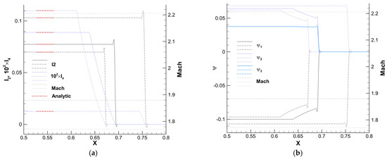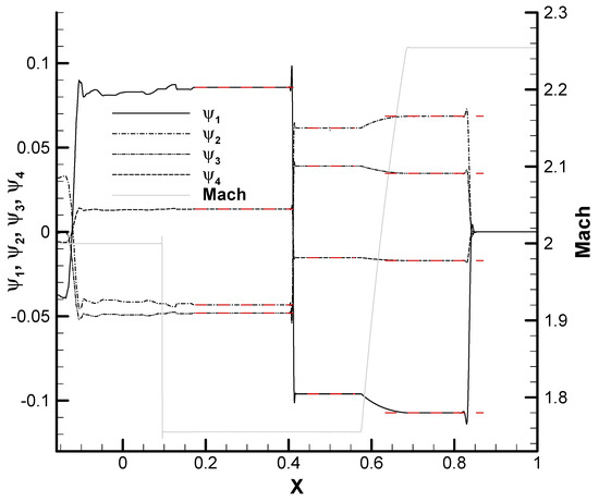 I4 and the adjoint variables along Mach lines 3, 4, and 5. The corresponding analytic values for