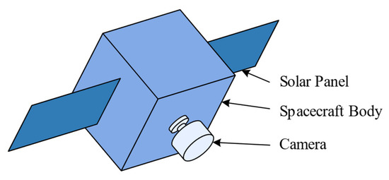 The satellite system studied in this paper consists of the spacecraft body, the solar panels, and the camera. The spacecraft body and the camera can be regarded as a rigid body; the solar panel is a flexible body, and the motion of the camera relative to the spacecraft body is constrained by the magnetic force using the magnetic bearing. The satellite structure is shown in Figure 5, and the parameters of each component are shown in Table 1.