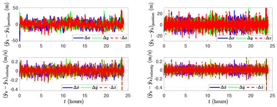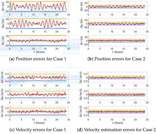 Figure 14 shows the position and velocity estimation errors in the RIC frame for Case 2. Errors remain less than m for position and m/s for velocity in all three components.