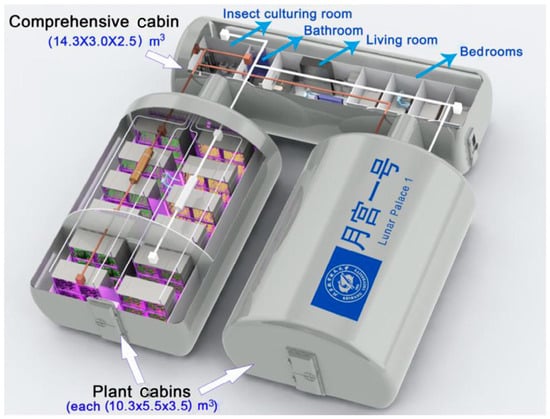 - Liu, H.; Yao, Z.; Liu, H. Human Lunar Base: “Lunar Palace 1” Team of Beihang University Unveils China’s “Lunar Palace” Plan. Innovation 2024, 5, 100592. [Google Scholar] [CrossRef]