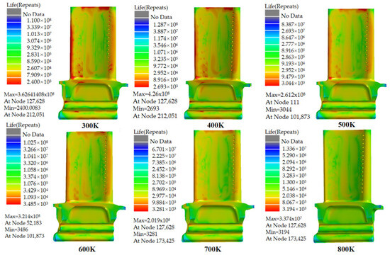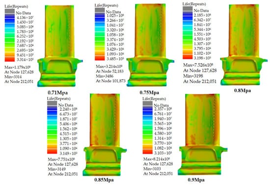 Cloud picture of blade life under different pressures of 600 K cold air.