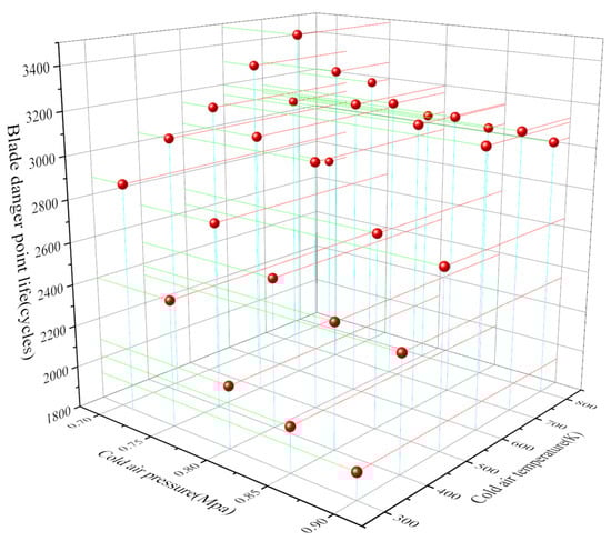 Cloud picture of blade life at different temperatures of 0.75 MPa with cool air.