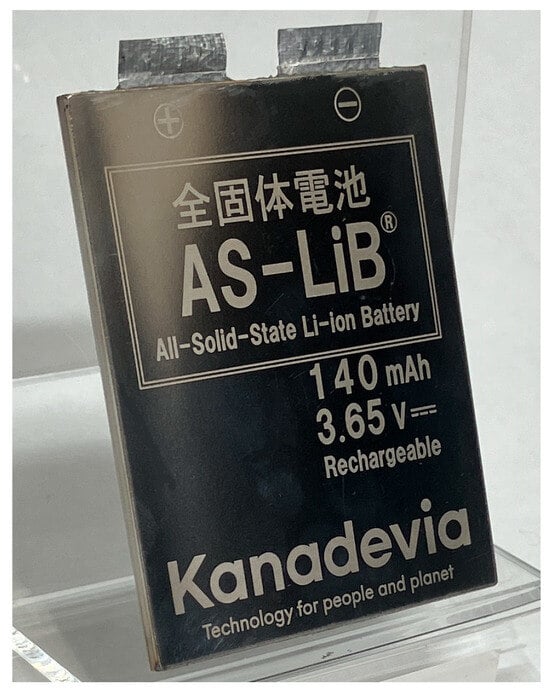 - Kanadevia. All-Solid-State Lithium-Ion Batteries. Available online: https://www.kanadevia.com/english/business/field/functional/as-lib.html (accessed on 3 March 2025).