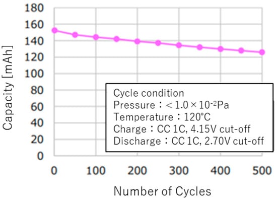 Capacity retention rate during continuous charge–discharge cycles at 120 °C under vacuum [13].