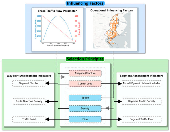 To accurately assess congestion states, this study adopts a two-level evaluation framework comprising waypoint-level and segment-level congestion indicators. The selection principles are illustrated in Figure 2.