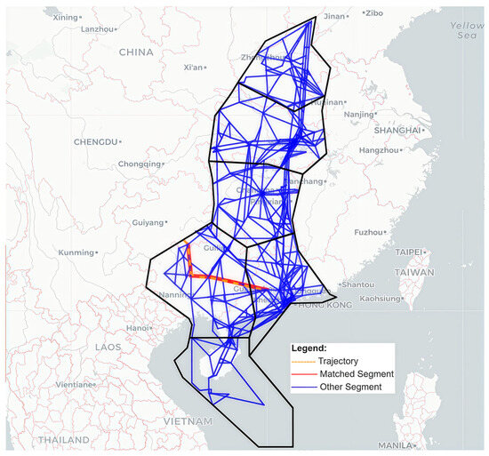 - Segment Traffic Flow: within a unit time interval, this represents the number of aircraft passing through a given segment’s observation plane, reflecting the traffic volume across that segment. The calculation formula is: