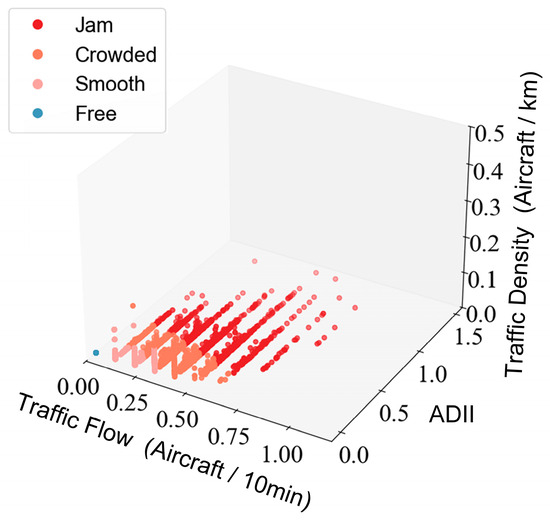 Air transport is widely regarded as the most efficient mode for long-distance passenger and cargo transportation, playing a critical role in promoting economic development and enhancing global connectivity. It has become a key component of modern transportation systems [1]. In recent years, driven by steadily rising demand, the number of global flights has increased markedly. According to the “2024 Global Civil Aviation Flight Operations Report”, there were approximately 32.85 million departures in 2023, and this number rose to 34.76 million in 2024, representing a 5.88% increase. However, transport and economic geography has demonstrated that aviation activities exhibit significant spatial–temporal concentration, with pronounced agglomeration effects observed in busy airspaces such as hub airports [2]. Yet the rigid constraints imposed by airspace capacity and air traffic controller workload mean that highly concentrated flight operations can lead to a substantial decline in the operational efficiency of the air transport system [3]. Indeed, on-time performance dropped from 75.57% in 2019 to 73.69% in 2024. This ongoing reduction in on-time performance has exacerbated the problem of flight delays, which seriously undermines both the safety and efficiency of the air transport system [4]. Flight delays represent a major challenge to the sustainable development of civil aviation. To analyze the distribution and causes of flight delays, it is necessary to investigate whether congestion occurs during air traffic control operations and to understand its distribution patterns [5].