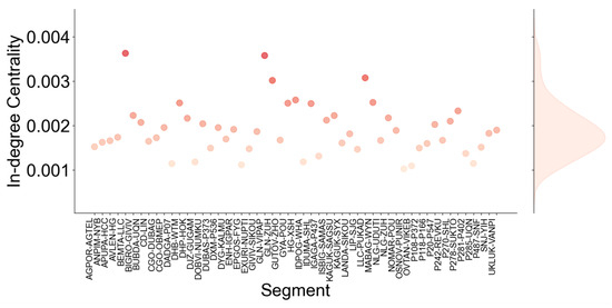 In-degree centrality distribution of selected segments.