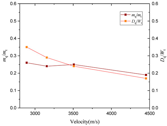 The mass of the dimensionless balls obtained by experiment and the dimensionless size obtained by simulation (mq represents the mass of stripping ball; mt represents the mass of target; Dq represents the simulated diameter of the ball; and Wt represents the size of target.).