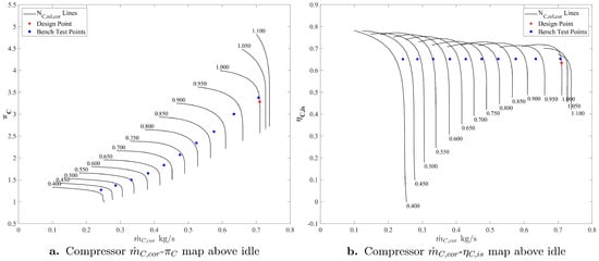 The validation platform for the method described in this paper is a micro-turbojet engine. Since no published component characteristic data are available for this engine, this study employs generic above-idle characteristics modified based on bench test data [33]. The general procedure for obtaining the above-idle component characteristics is as follows: