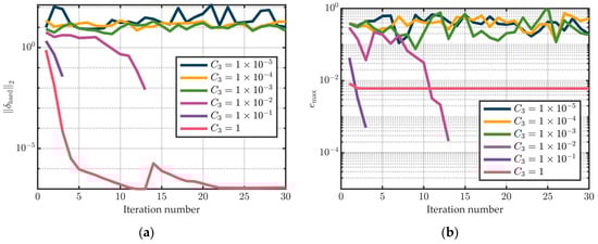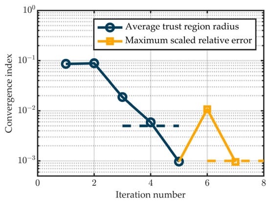 The performance of SCP frameworks hinges on the design of their trust-region mechanism, which mediates the trade-off between linearization fidelity and convergence speed. Existing implementations adopt one of two paradigms: hard trust regions or soft trust regions. Hard trust regions impose fixed radii on each convex subproblem. Large radii promote rapid progress toward the global optimum but exacerbate linearization error and can destabilize convergence, while small radii curb approximation errors at the expense of very slow progress. Moreover, hard radii often induce oscillatory divergence near the solution [], necessitating auxiliary stabilization aids—such as virtual controls, line searches, or adaptive radius tuning—to restore convergence [,,,]. Soft trust regions, by contrast, treat the trust radius as an optimizable variable penalized in the objective function. This approach naturally avoids infeasibility from linearization-induced constraint mismatches and yields more robust convergence. However, soft trust regions can suffer from suboptimal solutions if the initial trajectory guess is poor or the penalty weight is mis-tuned. Recent advances propose high-order soft trust-region formulations to improve both optimality and convergence efficiency [].