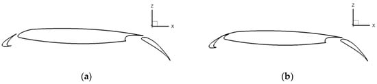 Comparison of the airfoil geometry between the CRM-HL baseline model and the CRM-HL modified model. (a) CRM-HL baseline model; (b) CRM-HL modified model.