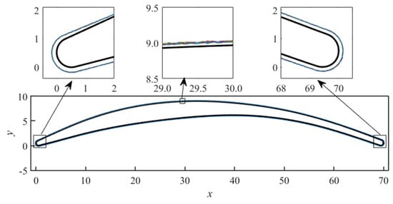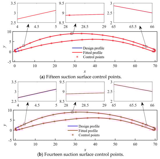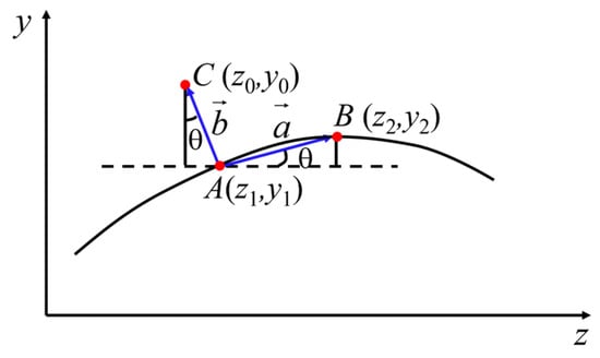 Based on the coordinate points A and B, the angle θ between the vector and the horizontal can be calculated by Equation (25). Since vector is orthogonal to the vector , the angle between a vector and the vertical direction is θ. In turn, based on the data of the original coordinates A, the fouling blade coordinate point C can be obtained through Equations (16) and (17). In this way, the coordinates of each point on the clean blade can be obtained after the fouling blade, and the smooth connection of the coordinate points can be used to generate the fouling blade profile.