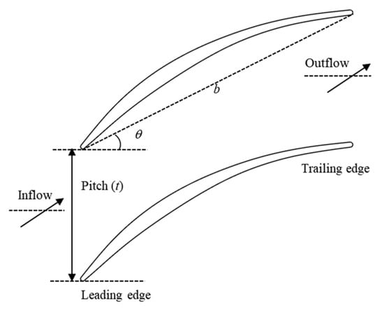 The fact is that this blade was independently developed by the group and has been subject to a substantial amount of experimental and numerical studies in previous research [47,48]. Figure 11 is the two-dimensional compressor blade of NUP-A1 with a leading edge radius of 0.5205 mm and a chord length of 69.95 mm. The design stagger angle is 26.58°, the pitch is 30.4350 mm, and the maximum thickness (cmax) is 3.5127 mm.
