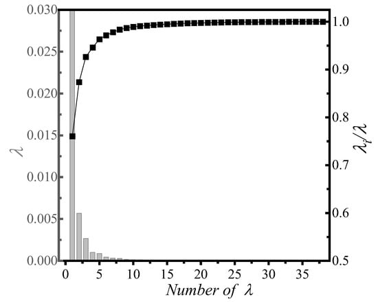 Eigenvalue distribution of covariance matrix of dense fouling layer thickness.
