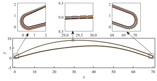 It is worth noting that to ensure that the loose fouling layer rough structures are as similar as possible to the real fouling morphology, the number of positional parameters x representing the fouling modeling is much larger than that of the control point positions x used in the dense fouling layer modeling. Specifically, an is the amplitude control parameter of the wave peak of the loose fouling layer and also controls the roughness, while is used to control the roughness frequency of the loose fouling layer, which is calculated by the following formula: