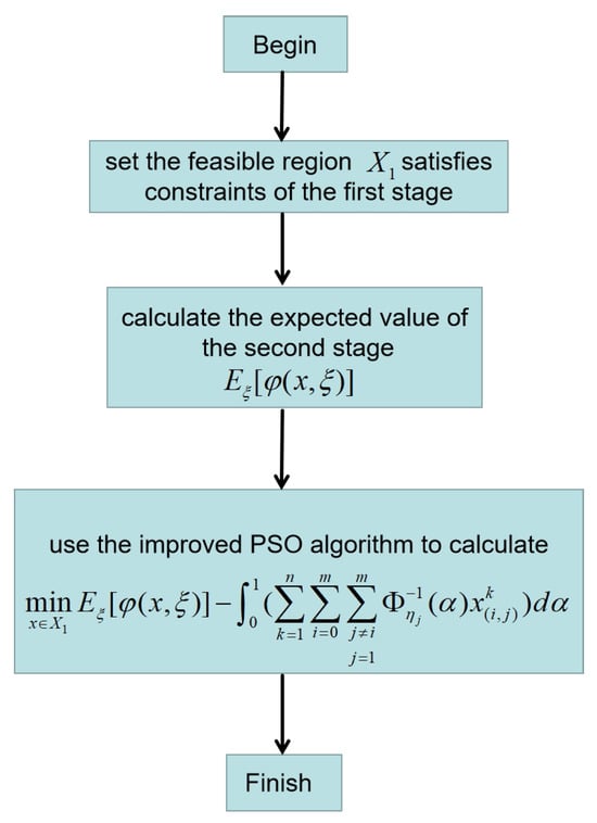 In Section 3, the problem is converted to the ETUCMA model which is solvable and deterministic. As the mathematical model established in this paper is a two-stage model, its algorithmic design is modified based on the fundamental principles of the basic particle swarm optimization (PSO) algorithm. This basic PSO algorithm includes initializing the particle swarm, computing particle fitness values, establishing initial individual and global best positions, updating these best positions, evolving the particle swarm, and enforcing boundary conditions. In the modified PSO, the individual leaders and global leaders can be found among particles that satisfy the constraints, as well as among particles that violate the constraints. Furthermore, the algorithm introduces novel strategies involving intersection and mutation to update particles, thereby preventing the algorithm from converging to local solutions and preserving population diversity. A comparative analysis was conducted between the results obtained from the original PSO algorithm and the improved PSO algorithm, in order to highlight the effectiveness of the improved PSO algorithm. In this part, a modified PSO algorithm is introduced.