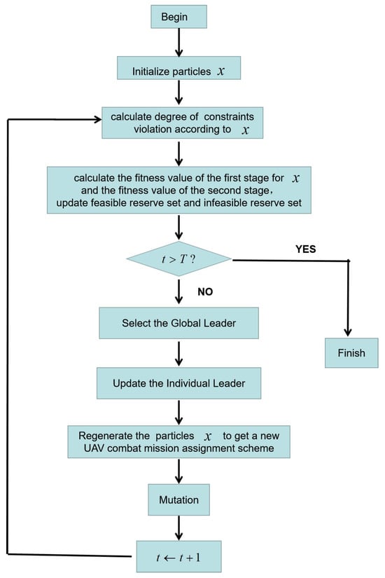 In the modern military field, unmanned aerial vehicles (UAVs) have a very wide range of application due to their remarkable advantages of low cost and complete functionality. UAVs are often used to perform tasks that are dangerous and monotonous for humans. For example, in the event of natural disasters, the harsh environment will make manned aircraft unable to carry out rescue; in the battlefield environment, small-scale multi-target reconnaissance missions are not suitable for manned aircraft to perform. In such circumstances, the utilization of UAVs becomes particularly crucial. However, the fault tolerance rate of single UAV combat is relatively low. Therefore, the clustering of UAVs has become the current development trend, and the task allocation of multi-UAV combat is the key to the application of UAV swarms []. Considering the complexity of the actual combat environment, studying the UAV combat mission assignment problem, including constructing its mathematical model, designing solution algorithms, and conducting experimental simulations, while taking into account various factors such as maximum amount of fuel storage, target value, and maximum flight distance, is of great practical significance.